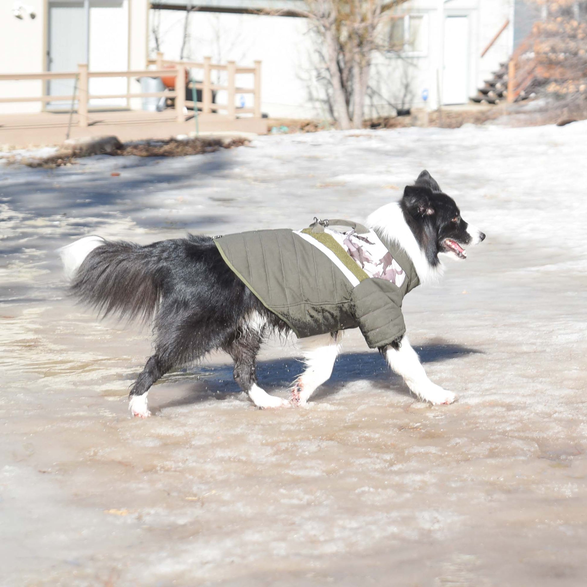 Made for safety, warmth ,comfort, and usability, the Mountaineer Camo is packed with practical features. Plus, the camo print makes your dog stand out or blend in depending on their surroundings.